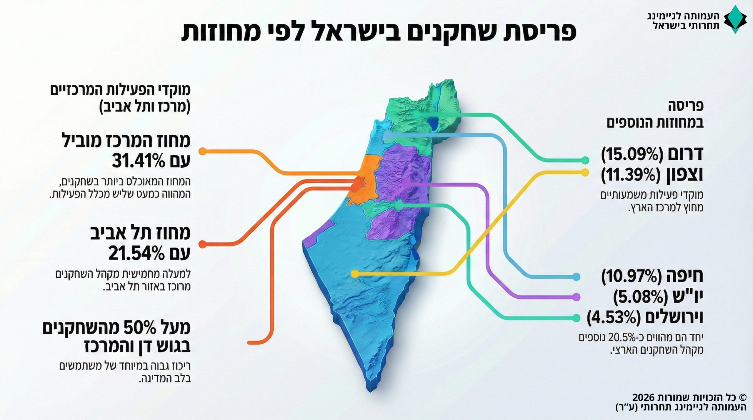 הגיימרים התחרותיים פזורים בכל רחבי ארץ ישראל. הריכוז הגבוה ביותר (מעל 50%) נמצא באזור תל אביב והמרכז, והיתר פזורים ברחבי המדינה: